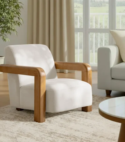 Sheesham Wood Frame Lounge Chair with Cotton Upholstery