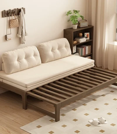 Adouer Wood Handcrafted Japanese Style Low Seating 3 Seater Sofa, Natural