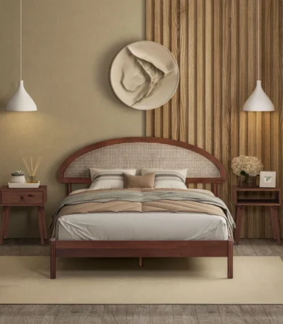 Adouer Wood "Ratan Cane" Solid Wood Bedside Table, Hand-Woven Rattan With 2 Drawers Elegant & Descriptive